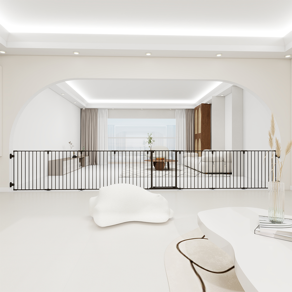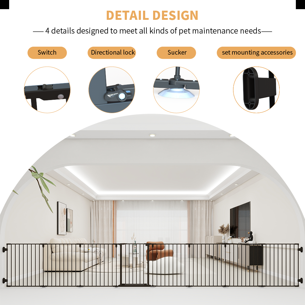 190" Extra Wide Black Fence With Door Metal Safety Gate For Pet/Dog, Max Length 190", 8-Panel