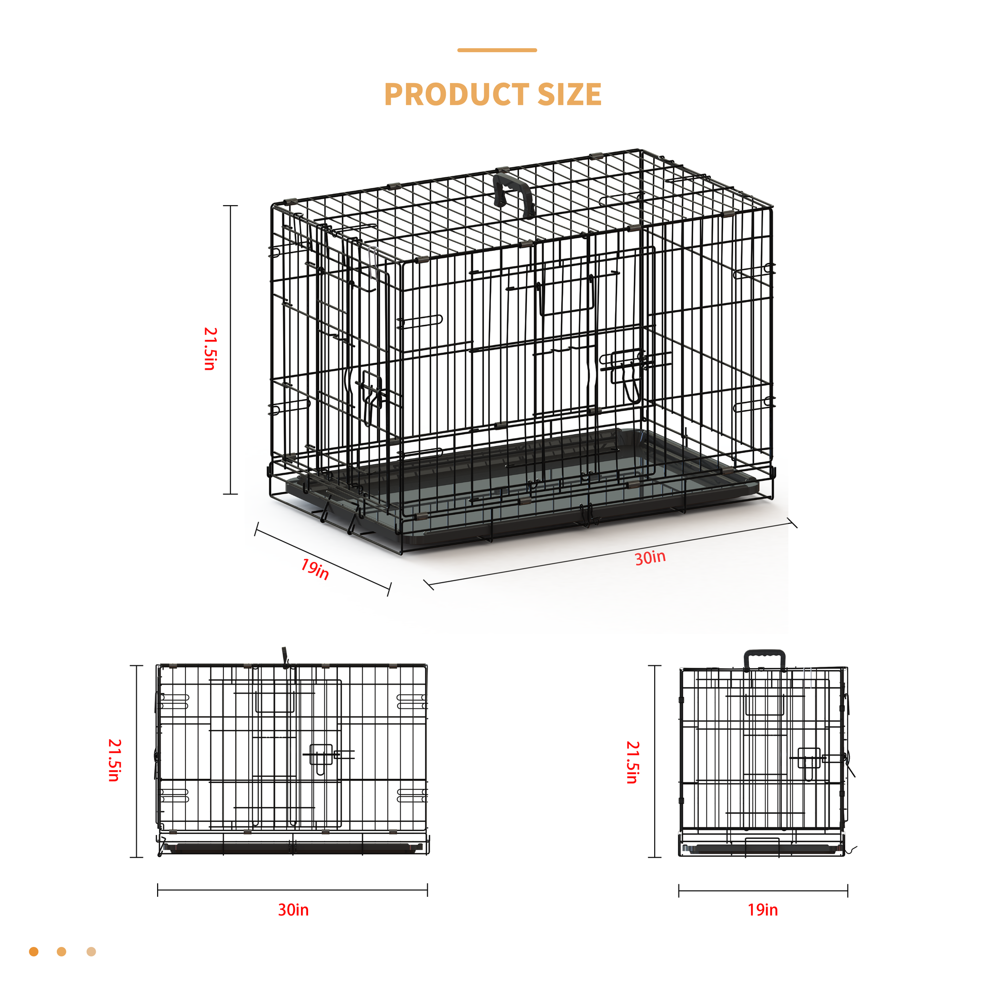 30-inch Black wire dog cage double lock mechanism double door single handle Single bolt