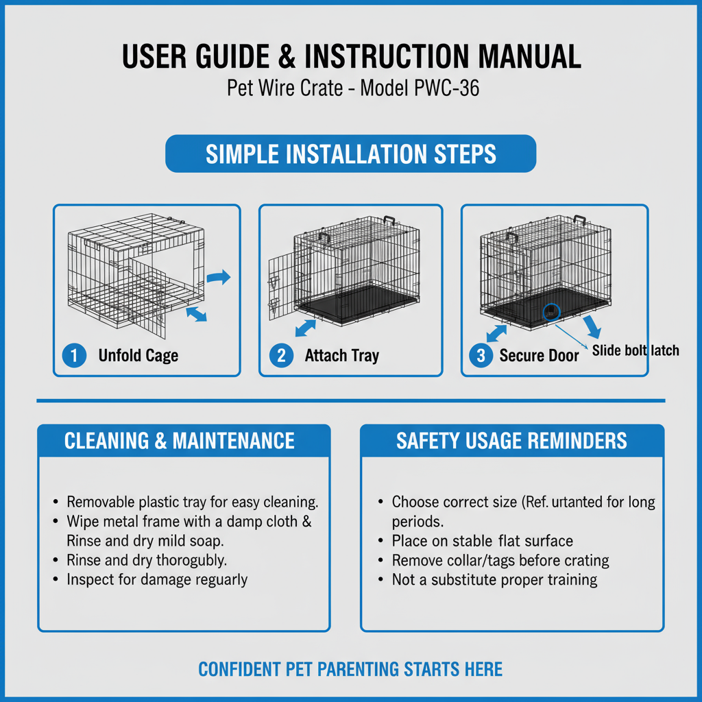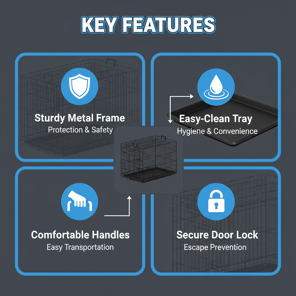36 inches Black wire dog cage double lock mechanism two doors two handles Double bolt